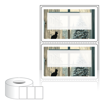 출력용 롤타입 스티커 디자인 라벨지, 규격코드: RL7044, 디자인코드: DA1494(오후엔 눈 그리고, 고양이), 70 x 43.5 (mm) , 지관: 75mm
