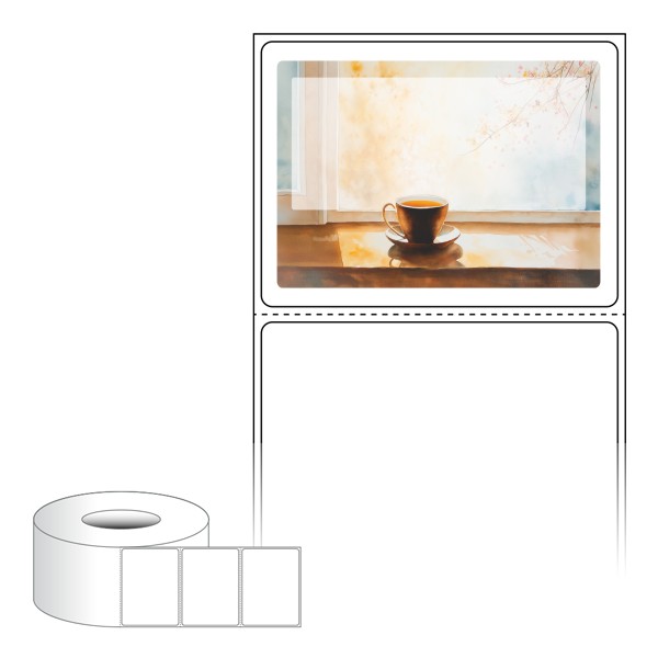 출력용 롤타입 스티커 디자인 라벨지, 규격코드: RL7052, 디자인코드: DA1425(가을날의 카페 창가에서), 70 x 52 (mm) , 지관: 75mm
