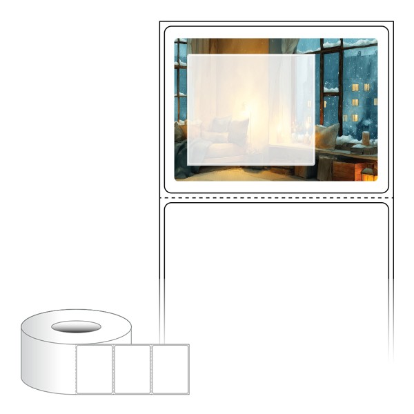 출력용 롤타입 스티커 디자인 라벨지, 규격코드: RL7052, 디자인코드: DA1461(아늑한 실내, 겨울의 창가에서), 70 x 52 (mm) , 지관: 75mm