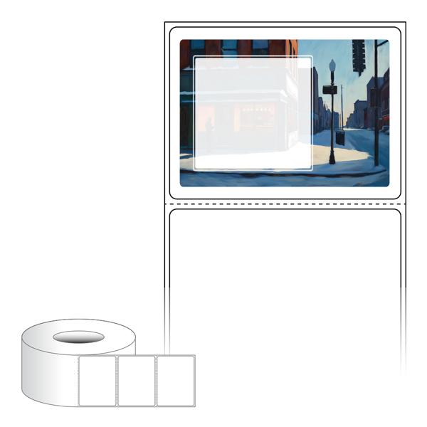 출력용 롤타입 스티커 디자인 라벨지, 규격코드: RL7052, 디자인코드: DA1540(한겨울 호퍼씨네 카페에서2), 70 x 52 (mm) , 지관: 75mm