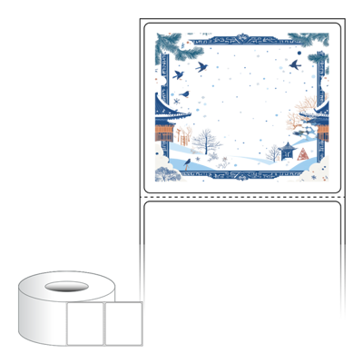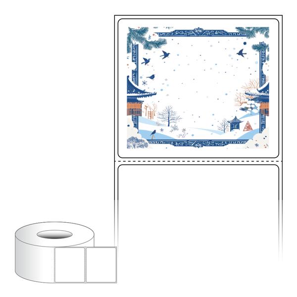 출력용 롤타입 스티커 디자인 라벨지, 규격코드: RL7061, 디자인코드: DA1514(겨울 프레임, 설날), 70 x 60.5 (mm) , 지관: 75mm