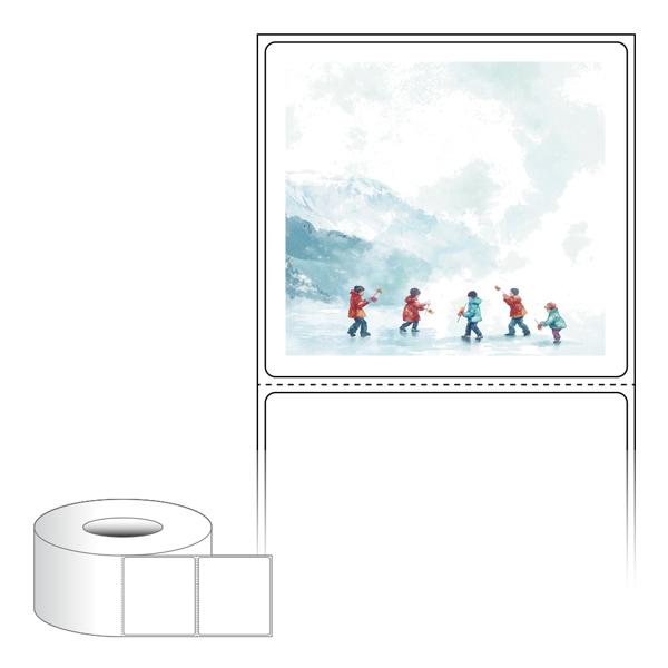 출력용 롤타입 스티커 디자인 라벨지, 규격코드: RL7065, 디자인코드: DA1522(추워도 즐거운 아이들의 겨울), 70 x 64.733 (mm) , 지관: 75mm