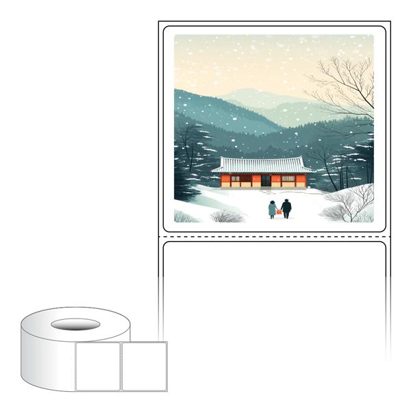 출력용 롤타입 스티커 디자인 라벨지, 규격코드: RL7065, 디자인코드: DA1577(귀향, 눈내리는 설날), 70 x 64.733 (mm) , 지관: 75mm