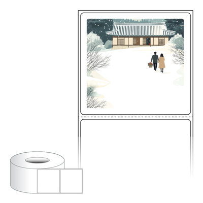 출력용 롤타입 스티커 디자인 라벨지, 규격코드: RL7065, 디자인코드: DA1580(눈내린 귀향의 따뜻한 길), 70 x 64.733 (mm) , 지관: 75mm