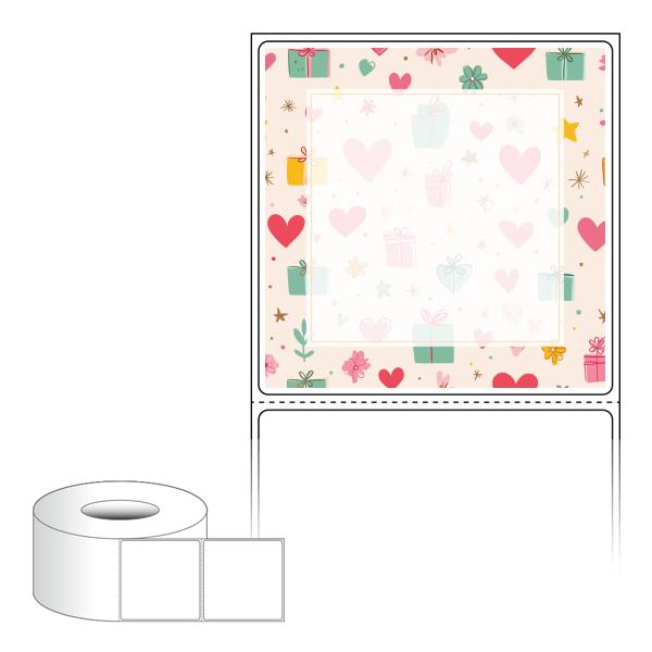 출력용 롤타입 스티커 디자인 라벨지, 규격코드: RL7373, 디자인코드: DA1393(선물 하트 포장지), 73 x 73 (mm) , 지관: 75mm