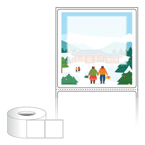 출력용 롤타입 스티커 디자인 라벨지, 규격코드: RL7373, 디자인코드: DA1569(설레는 설날의 아침), 73 x 73 (mm) , 지관: 75mm