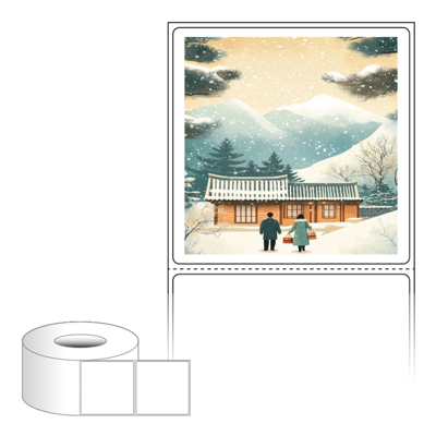 출력용 롤타입 스티커 디자인 라벨지, 규격코드: RL7373, 디자인코드: DA1575(설, 따뜻한 귀향), 73 x 73 (mm) , 지관: 75mm