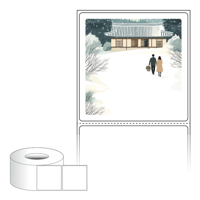 출력용 롤타입 스티커 디자인 라벨지, 규격코드: RL7373, 디자인코드: DA1580(눈내린 귀향의 따뜻한 길), 73 x 73 (mm) , 지관: 75mm