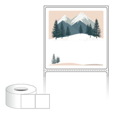 출력용 롤타입 스티커 디자인 라벨지, 규격코드: RL7373, 디자인코드: DA1582(저 잘지내요~ 겨울산에 인사), 73 x 73 (mm) , 지관: 75mm