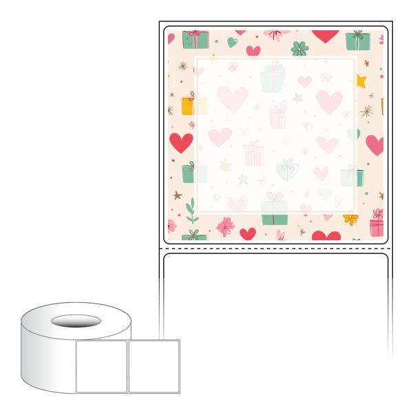 출력용 롤타입 스티커 디자인 라벨지, 규격코드: RL7573, 디자인코드: DA1393(선물 하트 포장지), 75 x 73 (mm) , 지관: 75mm