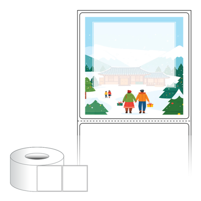 출력용 롤타입 스티커 디자인 라벨지, 규격코드: RL7573, 디자인코드: DA1569(설레는 설날의 아침), 75 x 73 (mm) , 지관: 75mm