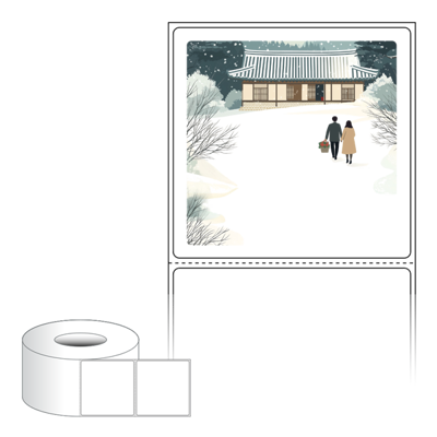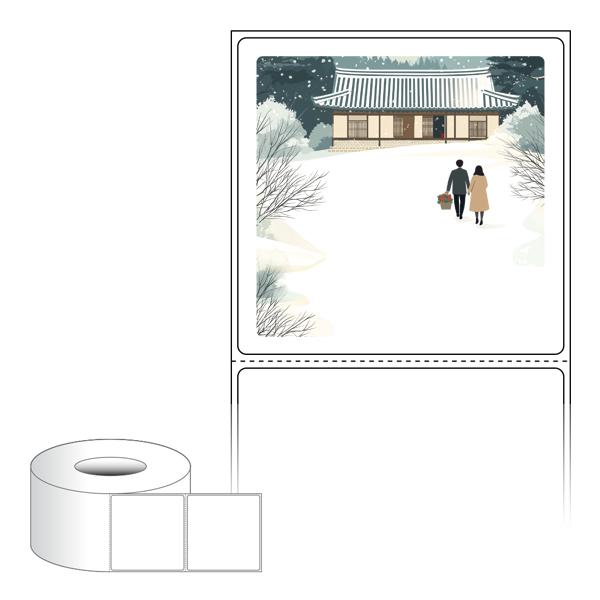 출력용 롤타입 스티커 디자인 라벨지, 규격코드: RL7573, 디자인코드: DA1580(눈내린 귀향의 따뜻한 길), 75 x 73 (mm) , 지관: 75mm