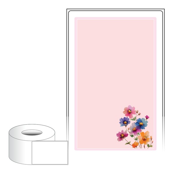 출력용 롤타입 스티커 디자인 라벨지, 규격코드: RL80124, 디자인코드: DA1451(꽃편지), 80 x 124 (mm) , 지관: 75mm