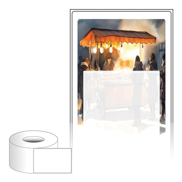 출력용 롤타입 스티커 디자인 라벨지, 규격코드: RL80124, 디자인코드: DA1509(퇴근 후 따끈한 오뎅국물 생각나), 80 x 124 (mm) , 지관: 75mm