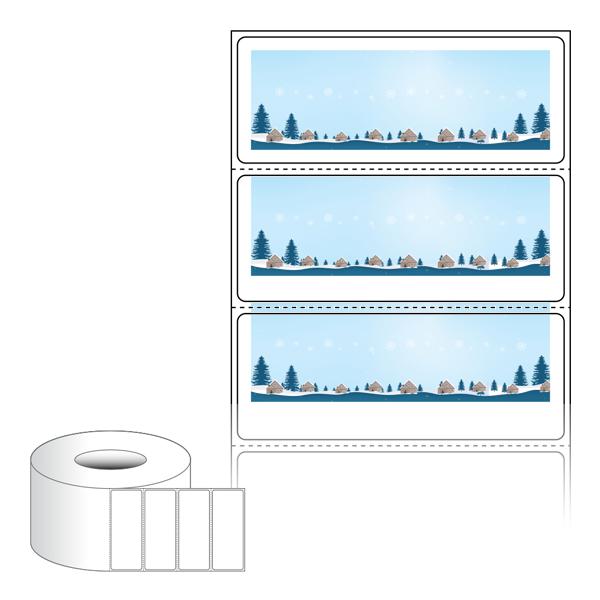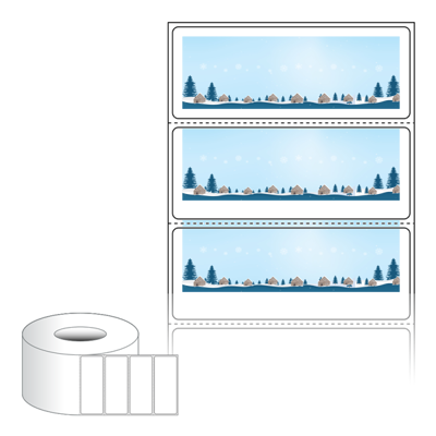 출력용 롤타입 스티커 디자인 라벨지, 규격코드: RL8031, 디자인코드: DA1718(눈내리는 고요한 숲의 마을), 80 x 30.867 (mm) , 지관: 75mm