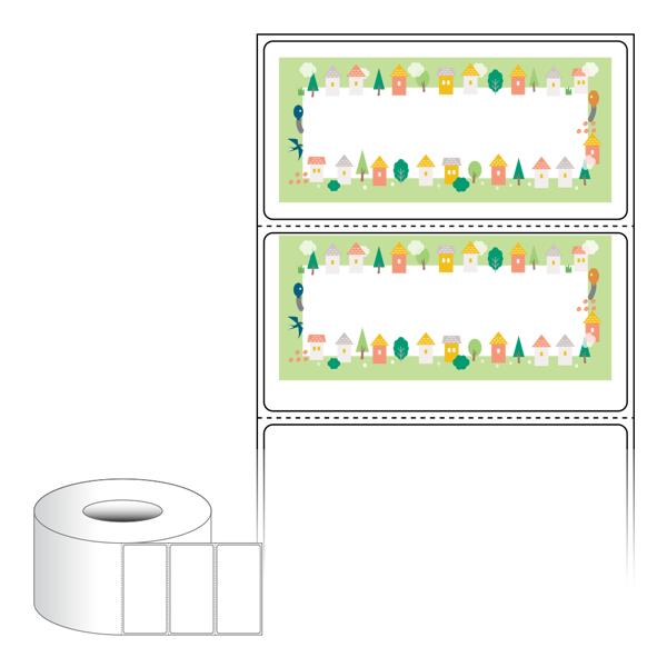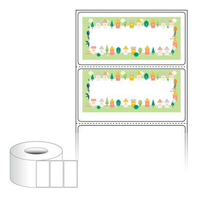 출력용 롤타입 스티커 디자인 라벨지, 규격코드: RL8040, 디자인코드: DA1644(행복한 마을의 이야기), 80 x 39.333 (mm) , 지관: 75mm