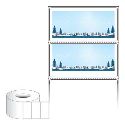 출력용 롤타입 스티커 디자인 라벨지, 규격코드: RL8040, 디자인코드: DA1718(눈내리는 고요한 숲의 마을), 80 x 39.333 (mm) , 지관: 75mm