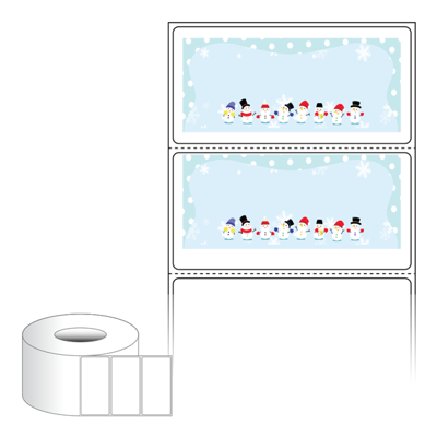 출력용 롤타입 스티커 디자인 라벨지, 규격코드: RL8040, 디자인코드: DA1721(눈사람 다 모였네요), 80 x 39.333 (mm) , 지관: 75mm