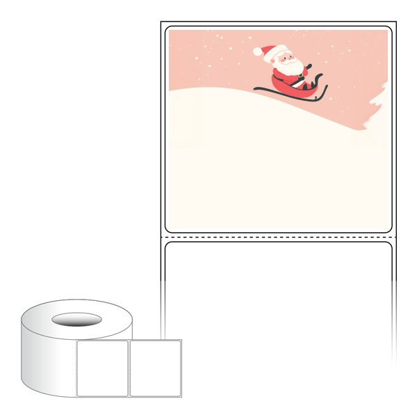 출력용 롤타입 스티커 디자인 라벨지, 규격코드: RL8073, 디자인코드: DA1482(산타 신난다), 80 x 73 (mm) , 지관: 75mm