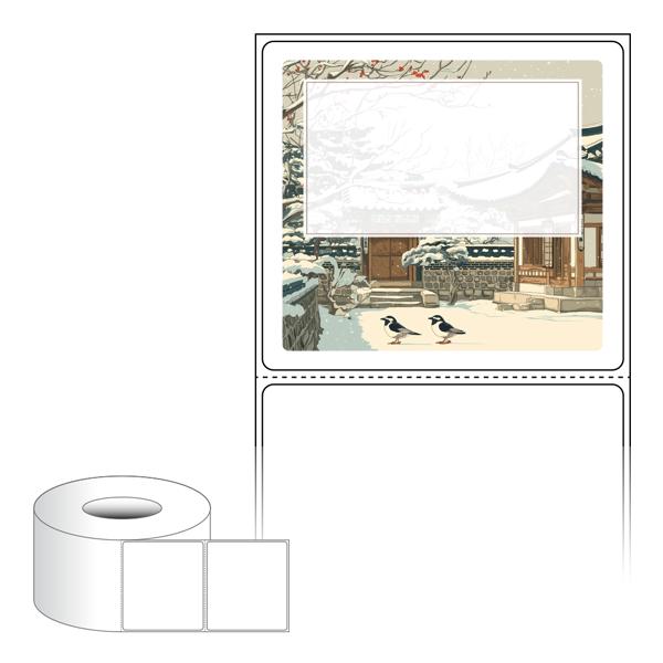 출력용 롤타입 스티커 디자인 라벨지, 규격코드: RL8073, 디자인코드: DA1546(눈내린 설날 아침), 80 x 73 (mm) , 지관: 75mm
