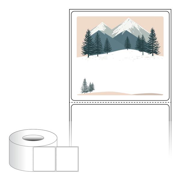 출력용 롤타입 스티커 디자인 라벨지, 규격코드: RL8073, 디자인코드: DA1582(저 잘지내요~ 겨울산에 인사), 80 x 73 (mm) , 지관: 75mm