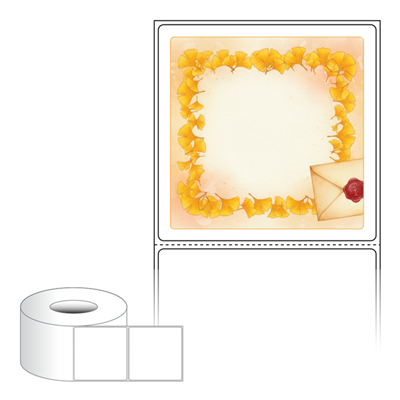 출력용 롤타입 스티커 디자인 라벨지, 규격코드: RL8080, 디자인코드: DA1426(은행잎 편지), 80 x 79.55 (mm) , 지관: 75mm