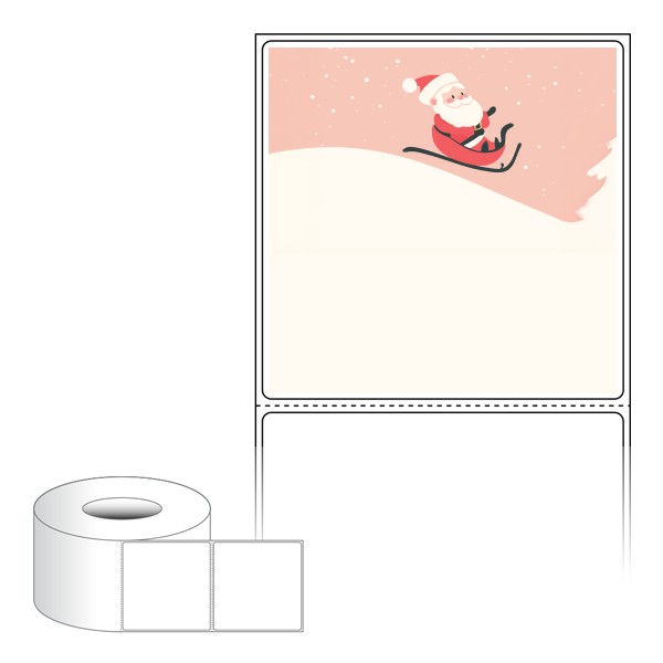 출력용 롤타입 스티커 디자인 라벨지, 규격코드: RL8080, 디자인코드: DA1482(산타 신난다), 80 x 79.55 (mm) , 지관: 75mm