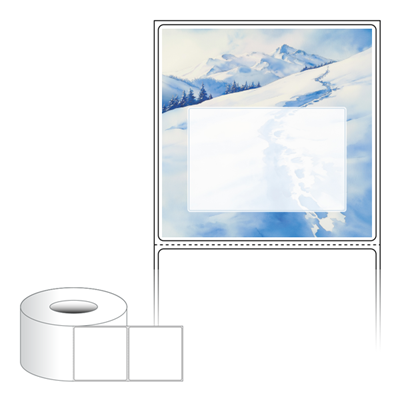 출력용 롤타입 스티커 디자인 라벨지, 규격코드: RL8080, 디자인코드: DA1490(겨울산에서 보내는 편지 1), 80 x 79.55 (mm) , 지관: 75mm