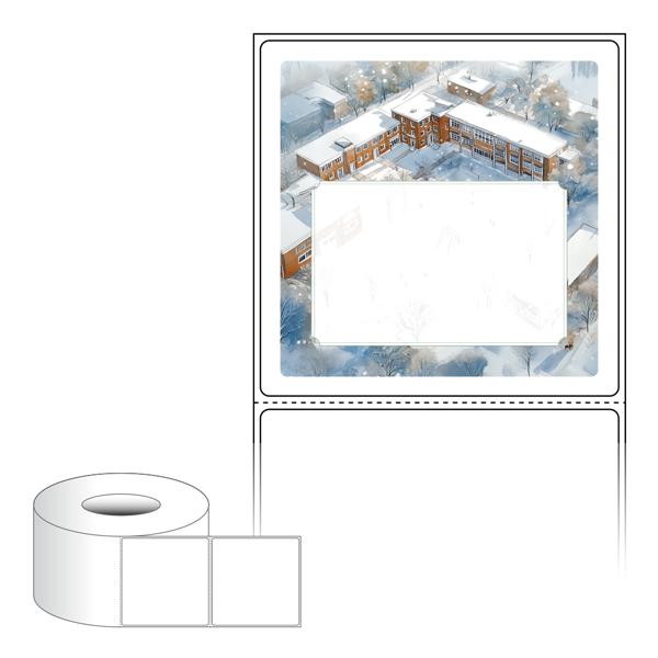 출력용 롤타입 스티커 디자인 라벨지, 규격코드: RL8080, 디자인코드: DA1535(겨울방학 학교에서 러브레터), 80 x 79.55 (mm) , 지관: 75mm