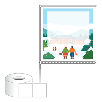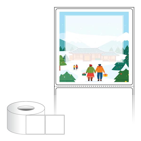 출력용 롤타입 스티커 디자인 라벨지, 규격코드: RL8080, 디자인코드: DA1569(설레는 설날의 아침), 80 x 79.55 (mm) , 지관: 75mm