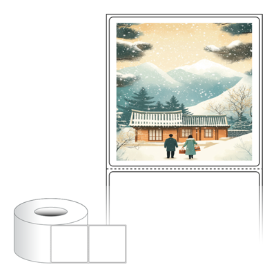 출력용 롤타입 스티커 디자인 라벨지, 규격코드: RL8080, 디자인코드: DA1575(설, 따뜻한 귀향), 80 x 79.55 (mm) , 지관: 75mm