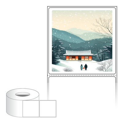 출력용 롤타입 스티커 디자인 라벨지, 규격코드: RL8080, 디자인코드: DA1577(귀향, 눈내리는 설날), 80 x 79.55 (mm) , 지관: 75mm