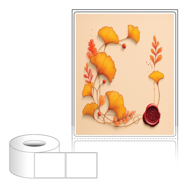 출력용 롤타입 스티커 디자인 라벨지, 규격코드: RL8098, 디자인코드: DA1437(은행잎 메모), 80 x 98 (mm) , 지관: 75mm