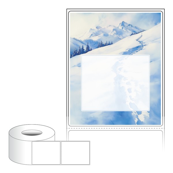 출력용 롤타입 스티커 디자인 라벨지, 규격코드: RL8098, 디자인코드: DA1490(겨울산에서 보내는 편지 1), 80 x 98 (mm) , 지관: 75mm