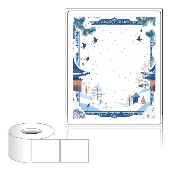 출력용 롤타입 스티커 디자인 라벨지, 규격코드: RL8098, 디자인코드: DA1514(겨울 프레임, 설날), 80 x 98 (mm) , 지관: 75mm