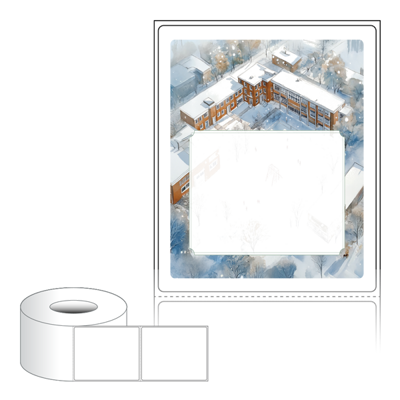 출력용 롤타입 스티커 디자인 라벨지, 규격코드: RL8098, 디자인코드: DA1535(겨울방학 학교에서 러브레터), 80 x 98 (mm) , 지관: 75mm