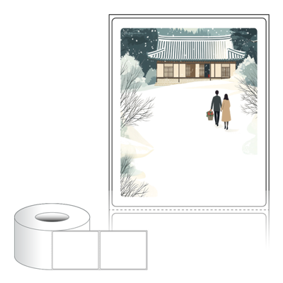 출력용 롤타입 스티커 디자인 라벨지, 규격코드: RL8098, 디자인코드: DA1580(눈내린 귀향의 따뜻한 길), 80 x 98 (mm) , 지관: 75mm