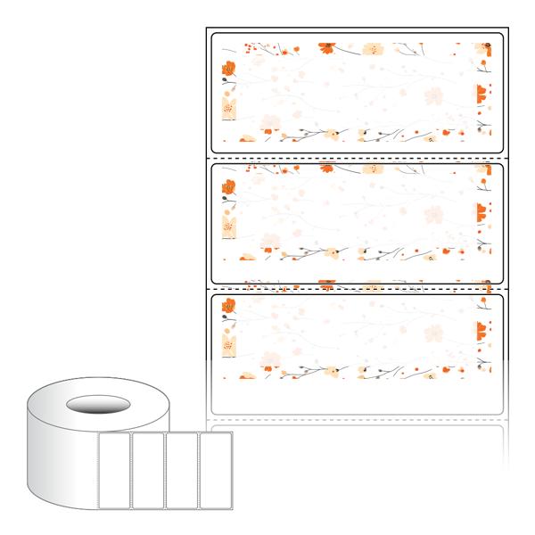 출력용 롤타입 스티커 디자인 라벨지, 규격코드: RL8535, 디자인코드: DA1553(꽃잎 포장지), 85 x 35 (mm) , 지관: 75mm