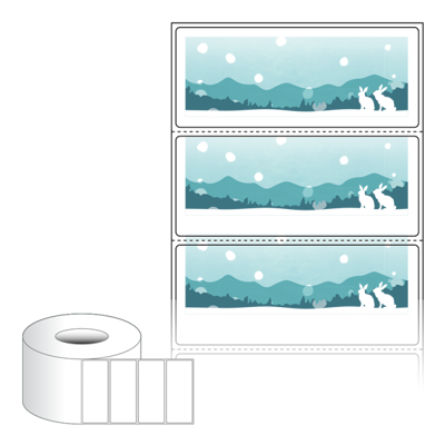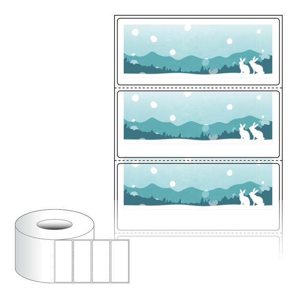 출력용 롤타입 스티커 디자인 라벨지, 규격코드: RL8535, 디자인코드: DA1716(설산 속 토끼가족), 85 x 35 (mm) , 지관: 75mm