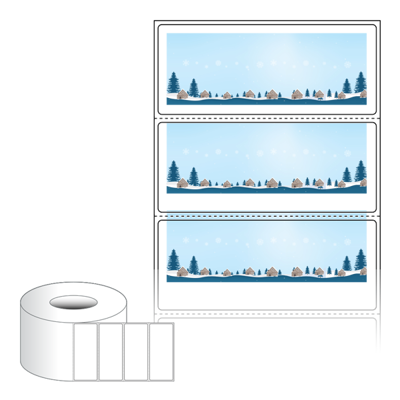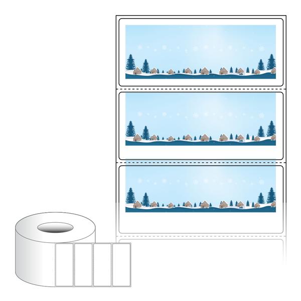출력용 롤타입 스티커 디자인 라벨지, 규격코드: RL8535, 디자인코드: DA1718(눈내리는 고요한 숲의 마을), 85 x 35 (mm) , 지관: 75mm