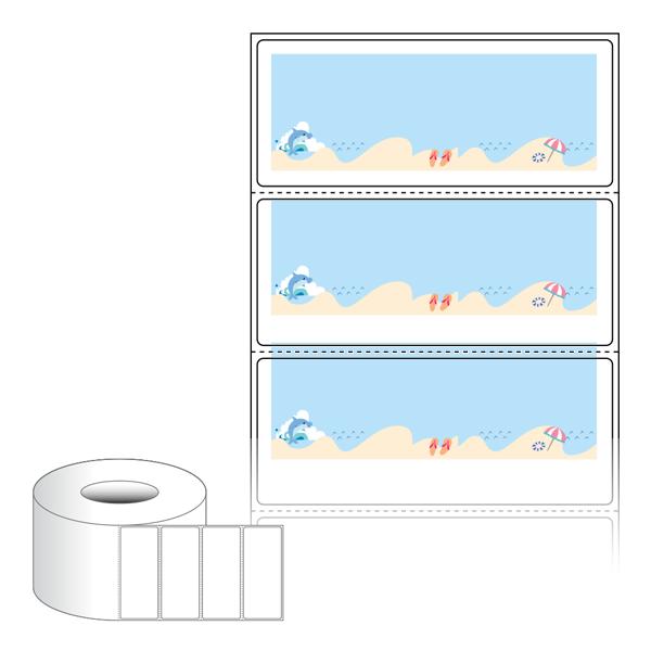 출력용 롤타입 스티커 디자인 라벨지, 규격코드: RL8535, 디자인코드: DA1792(해변가), 85 x 35 (mm) , 지관: 75mm