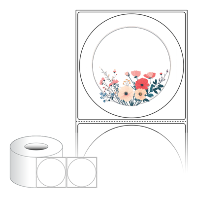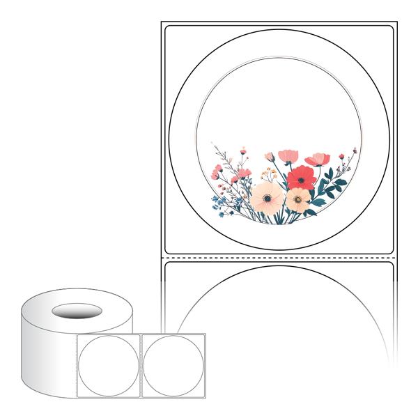 출력용 롤타입 스티커 디자인 라벨지, 규격코드: RL8787, 디자인코드: DA1361(플라워 프레임), Φ87 (mm) 원형 , 지관: 75mm