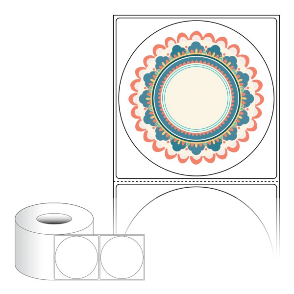 출력용 롤타입 스티커 디자인 라벨지, 규격코드: RL8787, 디자인코드: DA1418(단청 받침), Φ87 (mm) 원형 , 지관: 75mm
