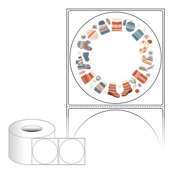 출력용 롤타입 스티커 디자인 라벨지, 규격코드: RL8787, 디자인코드: DA1513(두근두근 겨울이 다시 왔어요), Φ87 (mm) 원형 , 지관: 75mm