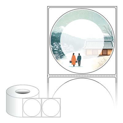 출력용 롤타입 스티커 디자인 라벨지, 규격코드: RL8787, 디자인코드: DA1579(설레는 귀향, 눈내리는 설날), Φ87 (mm) 원형 , 지관: 75mm