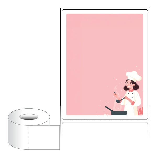 출력용 롤타입 스티커 디자인 라벨지, 규격코드: RL90116, 디자인코드: DA1434(요리교실 오픈했어요), 90 x 115.533 (mm) , 지관: 75mm