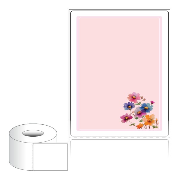 출력용 롤타입 스티커 디자인 라벨지, 규격코드: RL90116, 디자인코드: DA1451(꽃편지), 90 x 115.533 (mm) , 지관: 75mm