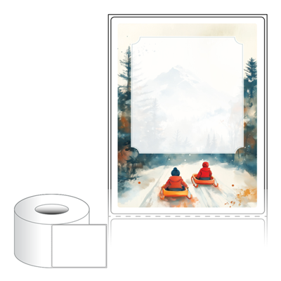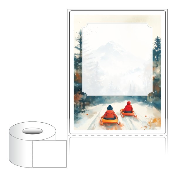 출력용 롤타입 스티커 디자인 라벨지, 규격코드: RL90116, 디자인코드: DA1495(겨울날의 동화, 그리고 즐거운 추억), 90 x 115.533 (mm) , 지관: 75mm