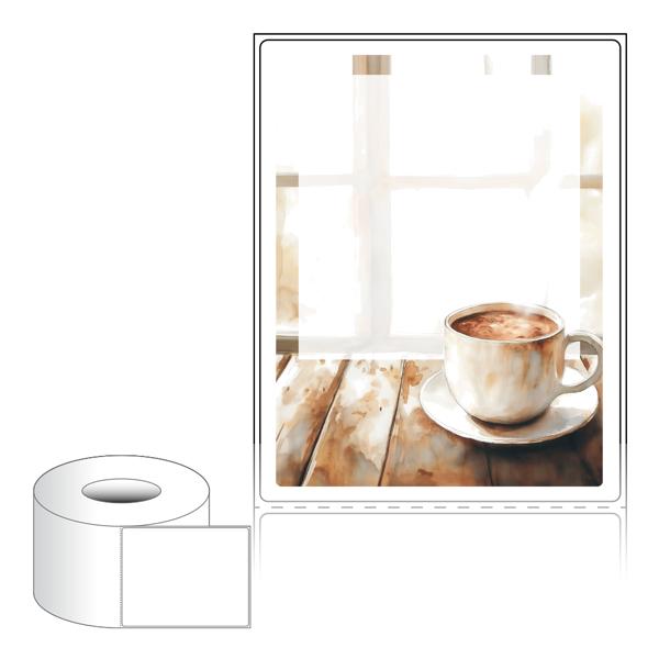 출력용 롤타입 스티커 디자인 라벨지, 규격코드: RL90116, 디자인코드: DA1536(그 겨울의 찻집에서 생각나는 사람에게), 90 x 115.533 (mm) , 지관: 75mm