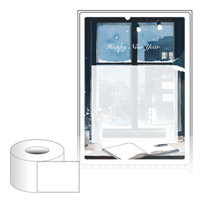 출력용 롤타입 스티커 디자인 라벨지, 규격코드: RL90124, 디자인코드: DA1503(겨울 창가에서, 해피뉴이어), 90 x 124 (mm) , 지관: 75mm